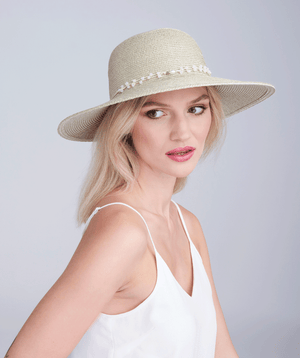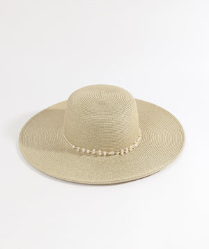 Black/Gold Metallic Shimmer Wide Brim Straw Hat with UPF 50 Sun Protection