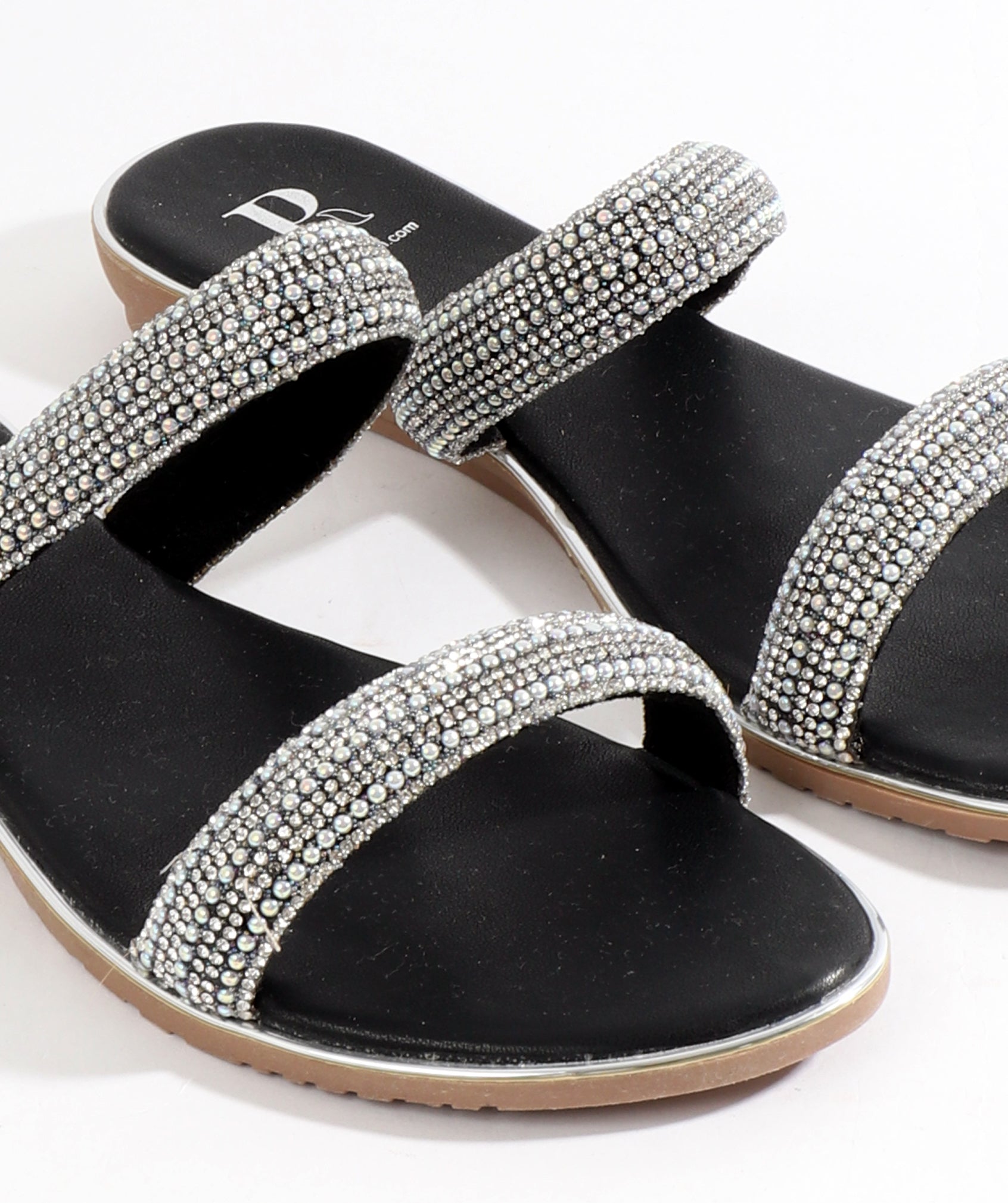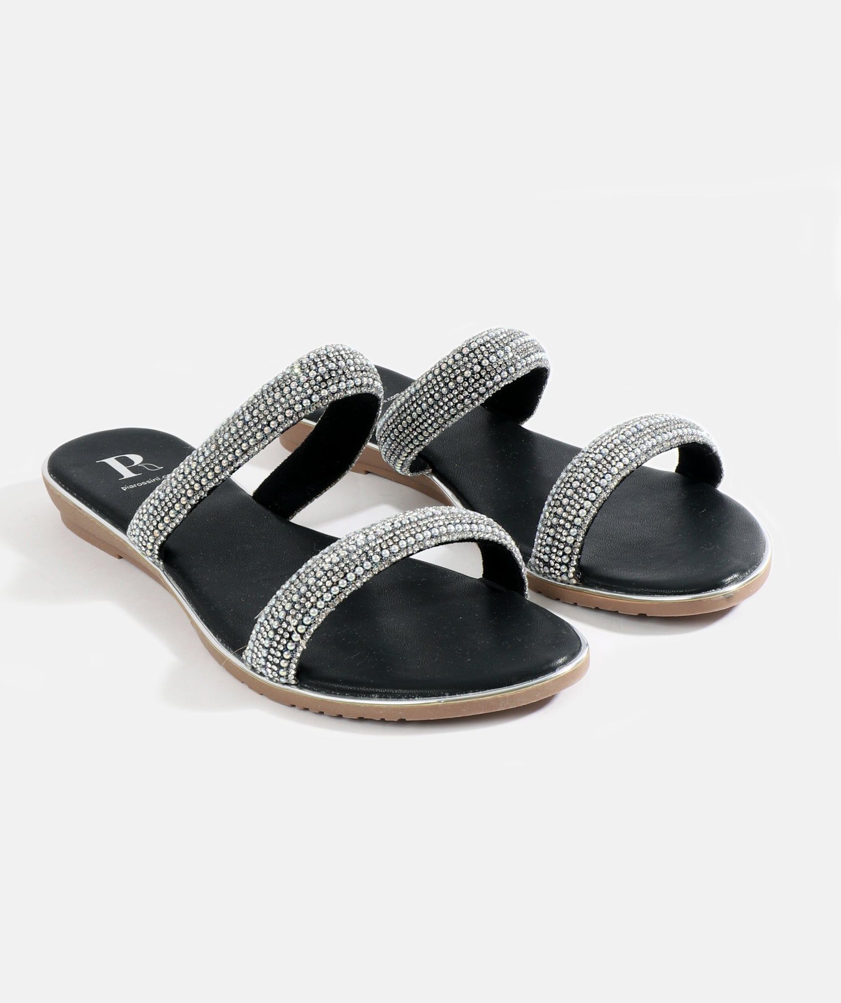 Luce con estilo con nuestras sandalias Kalippo en negro. Estas sandalias tipo mule con cuña y adornos son el complemento perfecto para cualquier look. Con su diseño de puntera abierta y plantilla acolchada, ofrecen comodidad y glamour. Sus deslumbrantes adornos añaden un toque de sofisticación, convirtiéndolas en un imprescindible para cualquier fashionista.