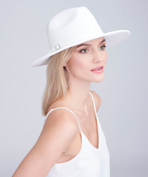 White/Silver Striped Straw Fedora with Metallic Accents and UPF 50 Protection