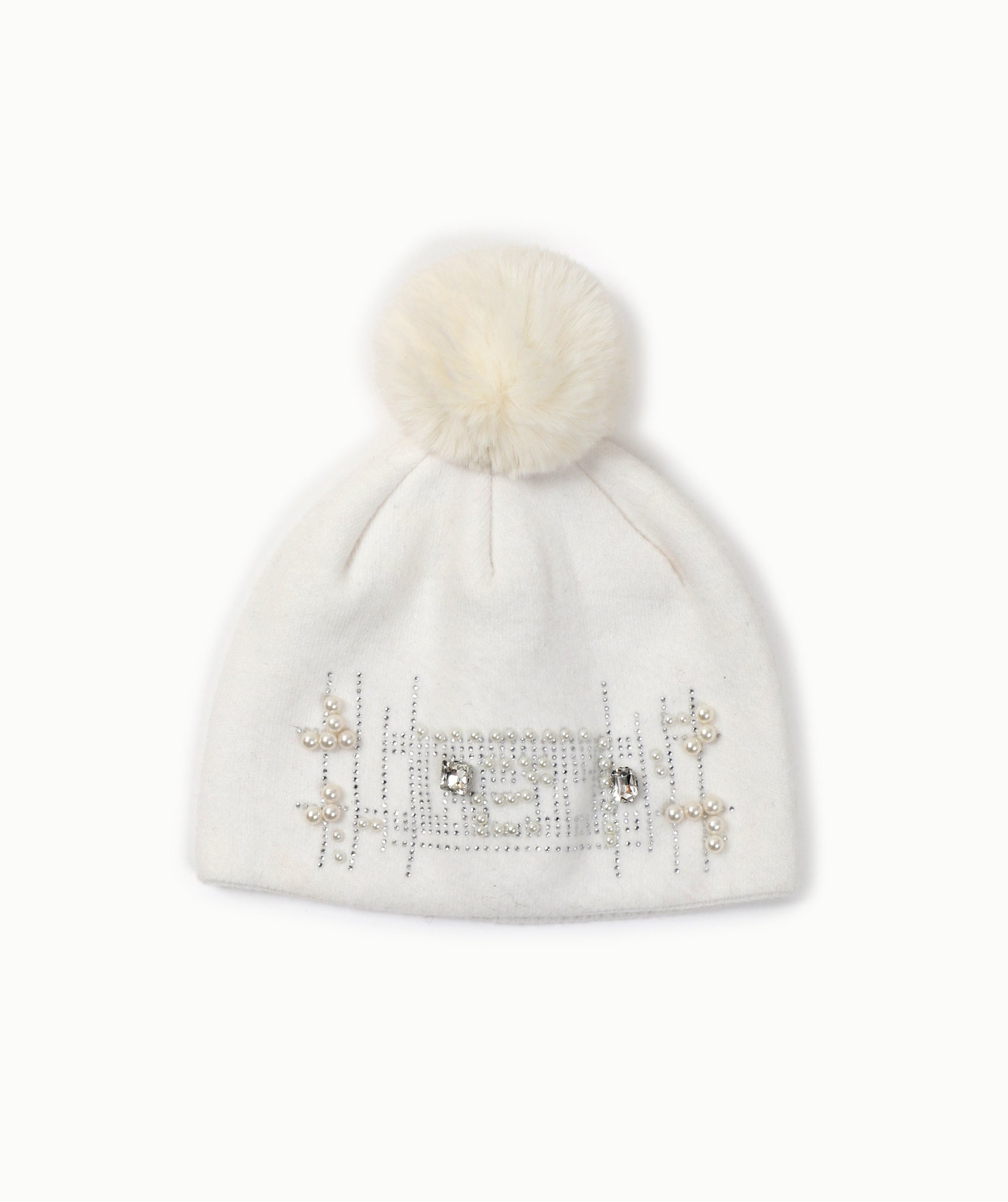 El gorro Lois con adornos es un gorro de punto sin ala que complementa cualquier look con facilidad. No necesita doblarse la ala. Su tela supersuave te envolverá en calidez este invierno y te mantendrá preparado para el mal tiempo. ¡También es fácil de guardar en el bolso! La corona frontal luce adornos de perlas negras a lo largo del dobladillo. Dos grandes diamantes de imitación adornan el diseño para un atractivo aún mayor.