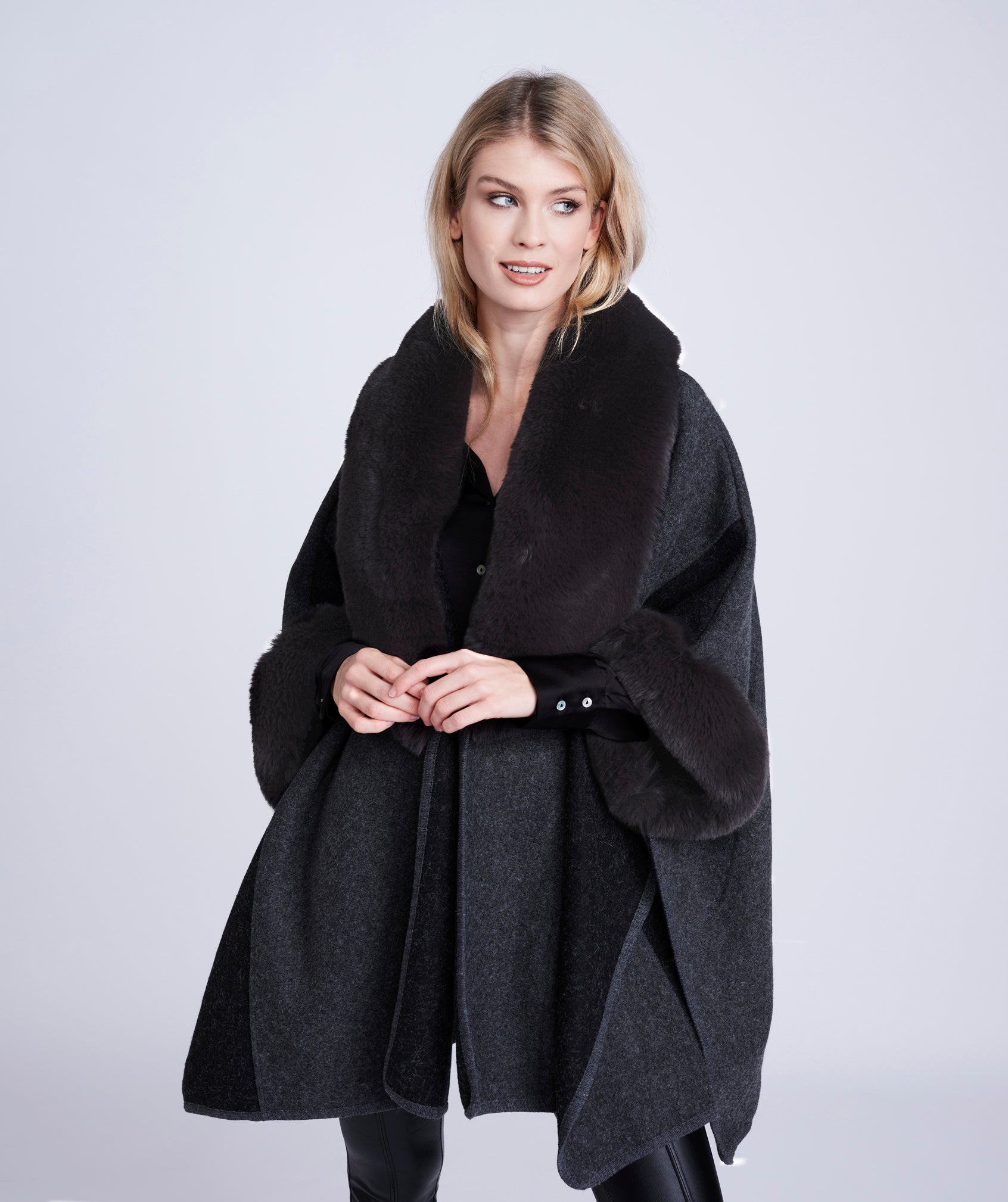 Mejora tu vestuario invernal con el elegante chal gris bicolor. Con elegantes mangas ¾, un estampado de cuadros atemporal y puños y cuello de suave piel sintética, este chal combina a la perfección sofisticación y comodidad. Ideal para combinar con estilo, su lujoso diseño ofrece calidez y versatilidad para cualquier ocasión invernal.