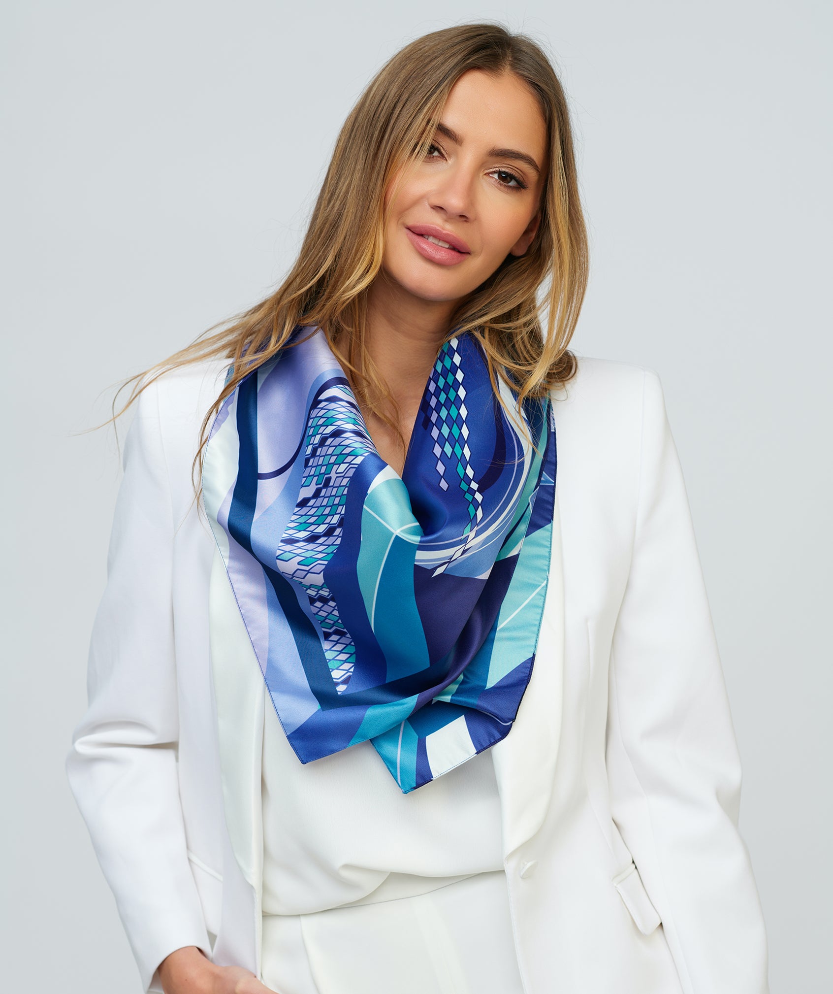 La bufanda de verano Blake Blue deslumbra este verano en distintos tonos de azul oceánico con reflejos metálicos plateados que evocan costas lejanas. Una hermosa bufanda de gran tamaño con estampado floral confeccionada con una tela suave y liviana que se siente lujosa contra la piel de verano. Esta bufanda de forma oblonga tiene bordes sin rematar para darle un toque informal que queda perfecto en la playa, en una excursión de un día o para salir a cenar.